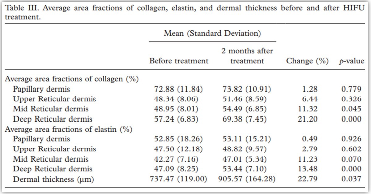 Suh DH, Choi JH, Lee SJ, Comparative histometric analysis of the effects of high-intensity focused ultrasound and radiofrequency on skin. J Cosmet Laser Ther. 2015;17(5):230-6. doi: 10.3109/14764172.2015.1022189.PMID: 25723905