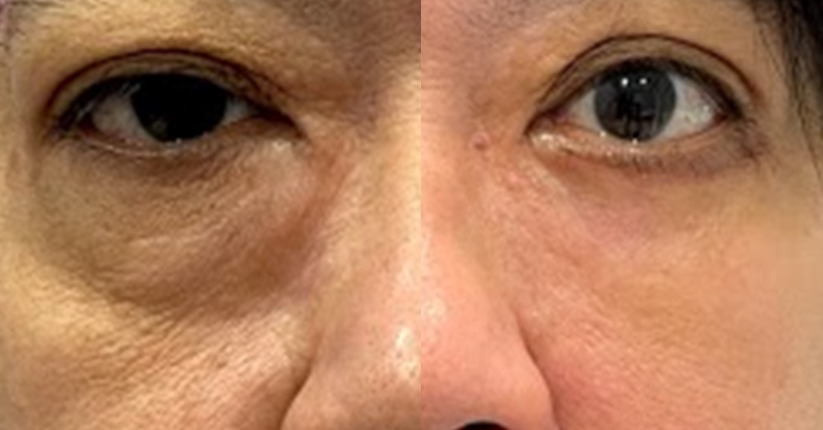 剛剛有提到來求診的患者是位老杯杯,如上圖可以看到因老化造成的眼袋膨出,會比年輕人的眼袋明顯許多。