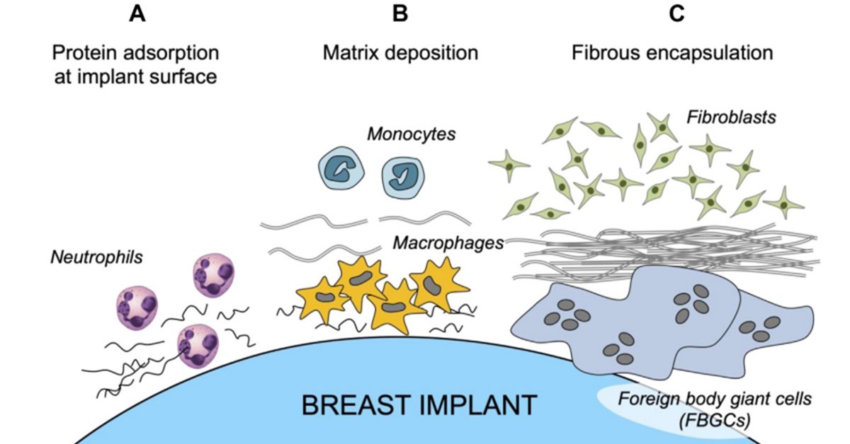 當我們的身體接受植入物時,身體的自然反應是形成一層由膠原纖維組成的莢膜,這是身體保護自身、隔離外來物質的一種方式。