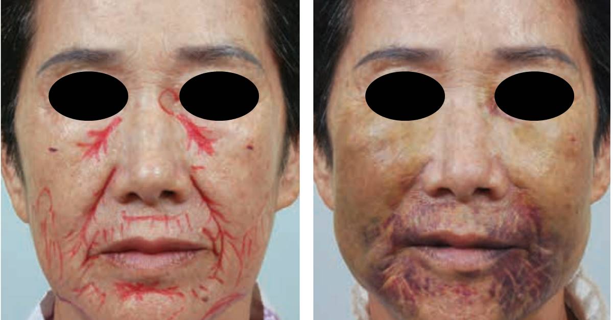 (使用脂肪槍做自體脂肪移植術後兩天,可以發現瘀青情況減少許多)