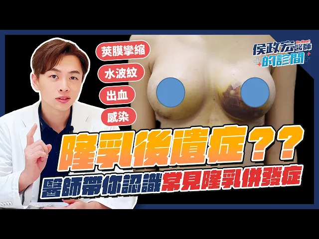 👋 哈囉~大家好,我是台中美之姿整形外科診所的侯政宏醫師。 不少美女們都夢想著擁有飽滿自然的胸型,不過在追求美型的過程中,手術安全與術後照護的觀念更是不能忽略的重點喔!今天就由我就來跟大家分享隆乳手術常見的術後風險與副作用,包括最讓人擔心的,莢膜攣縮、出血、感染、假體皺摺與水波紋。 看完這篇,你可以更了解如何避開隆乳失敗的關鍵陷阱喔!